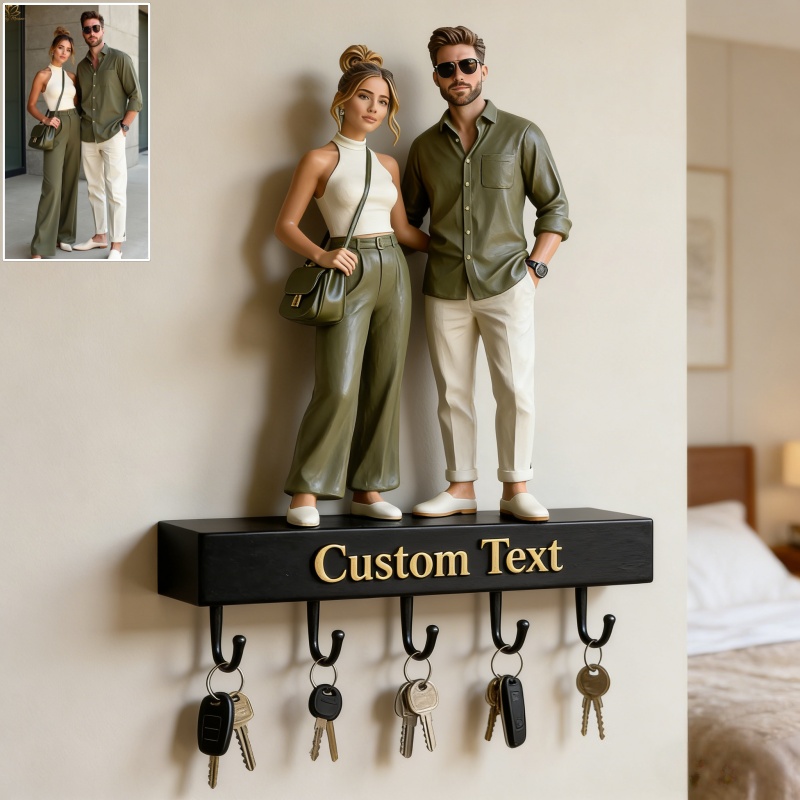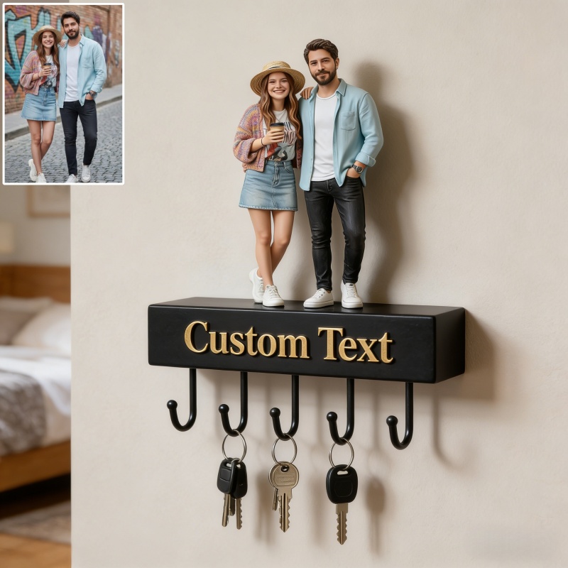 Personalized Vintage Copper-Tone Car Photo Wooden Wall Hook Decor