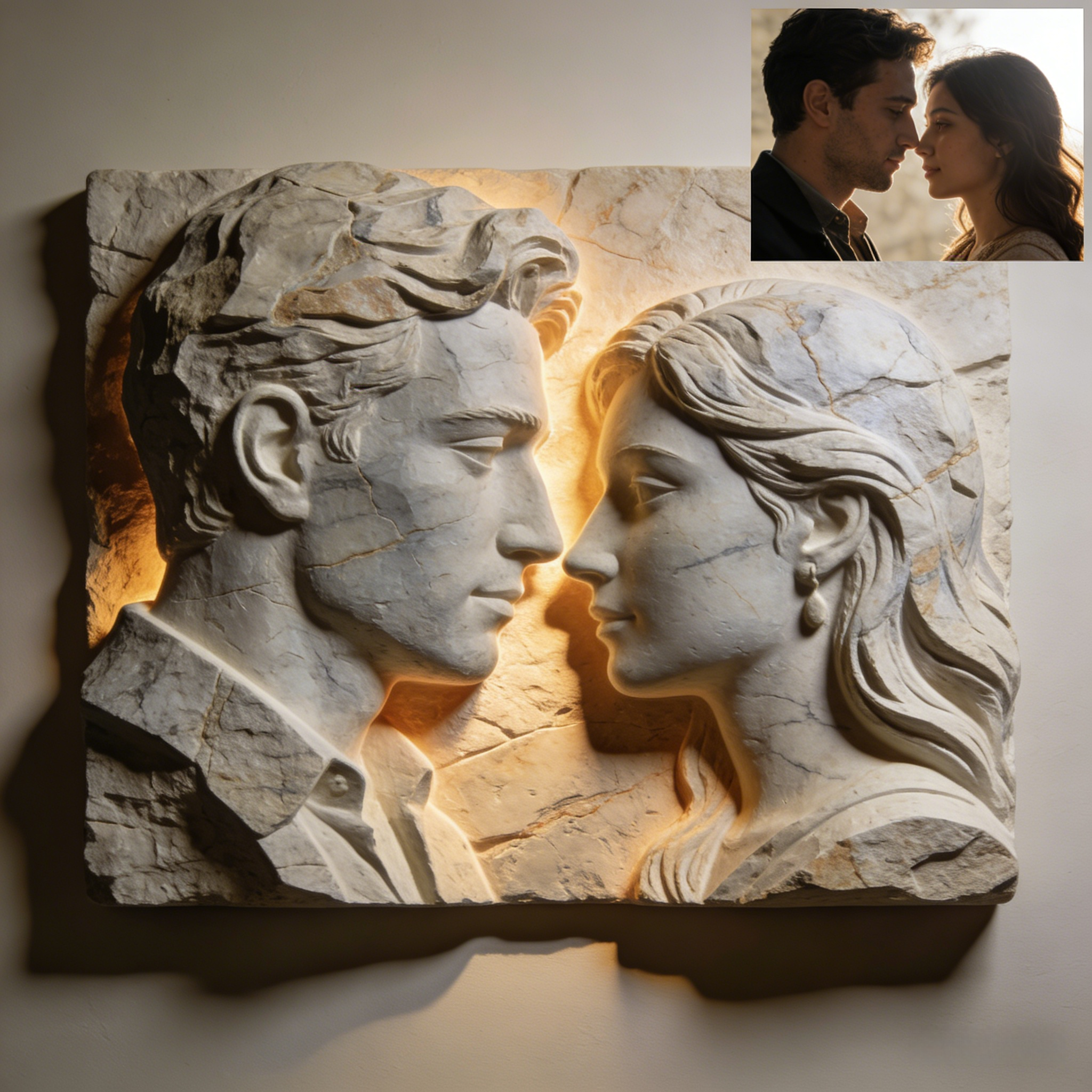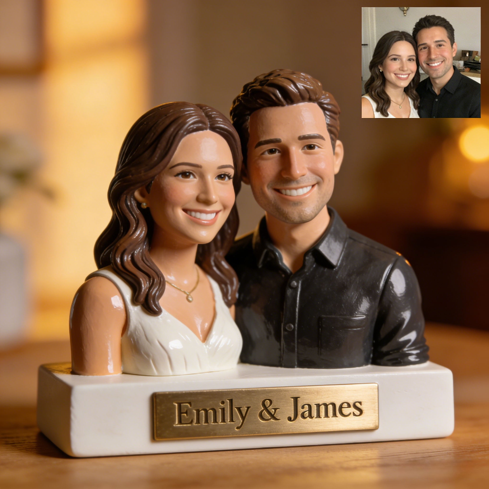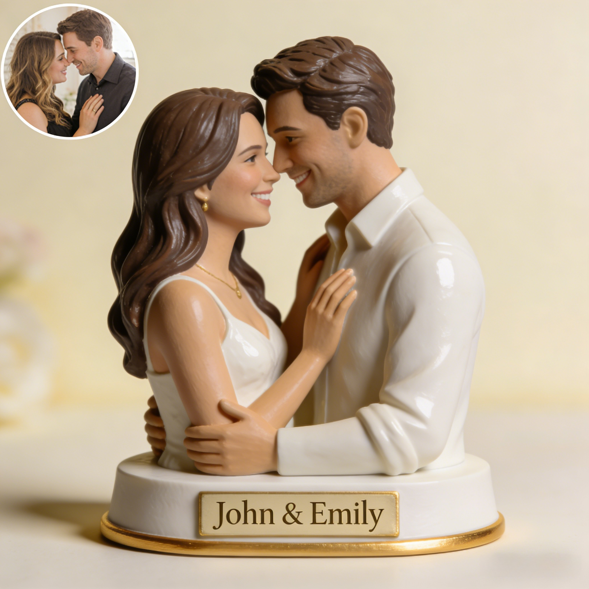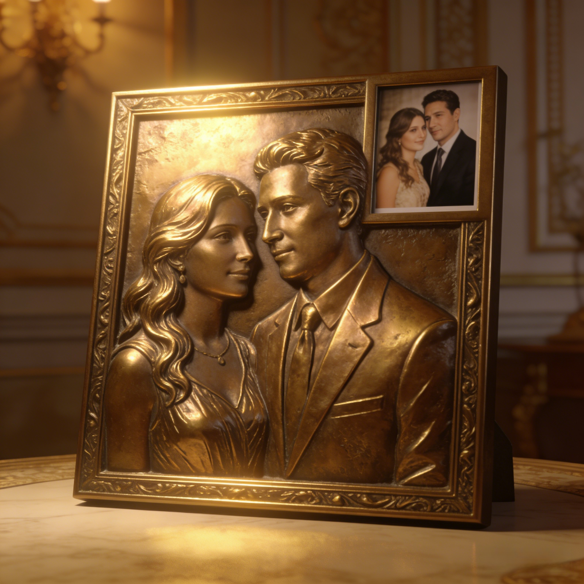 Designed with a refined bronze style portrait effect, the photo and names are created using high precision modeling techniques, ensuring clear facial features, smooth depth, and a sophisticated sculpted look. Simply upload a high resolution photo, and your image will be thoughtfully transformed into a personalized design that feels warm, romantic, and timeless.