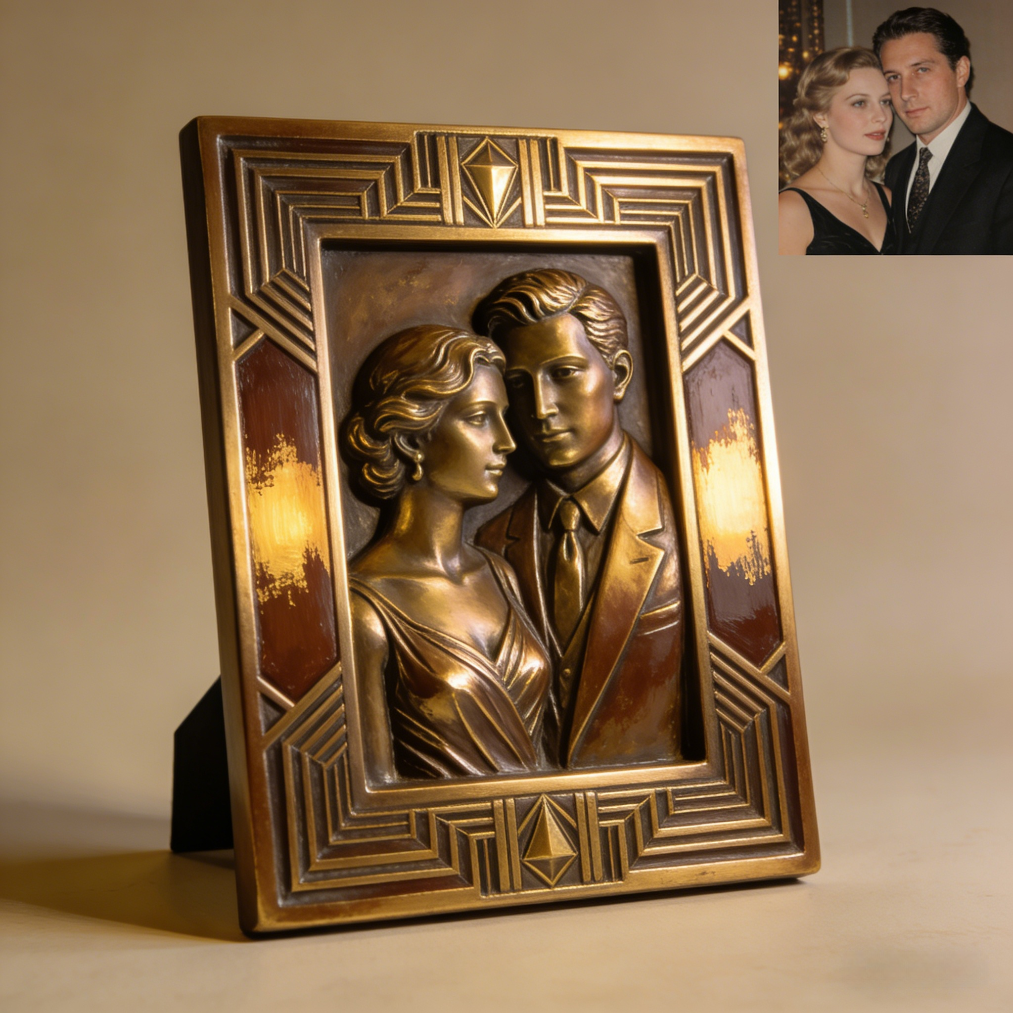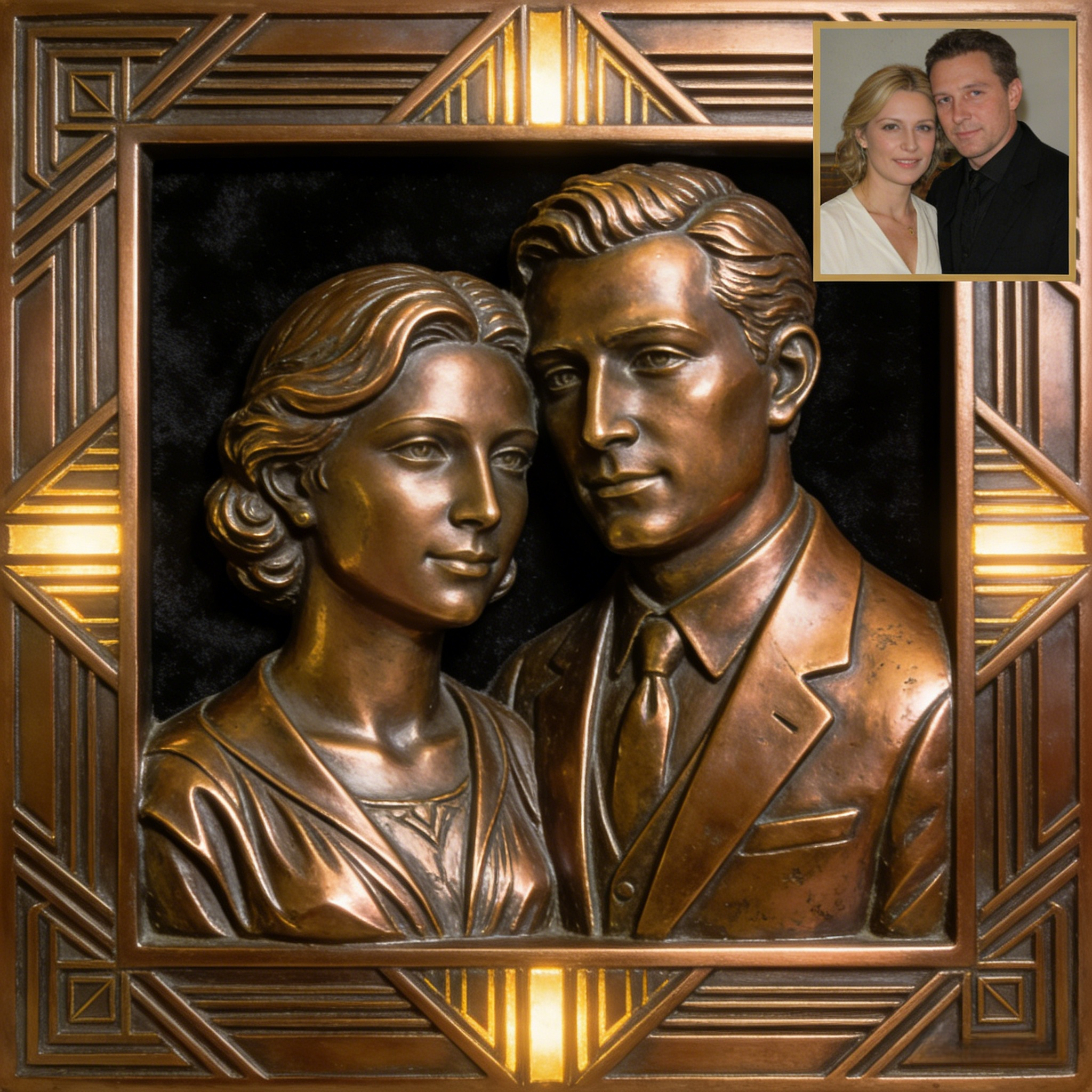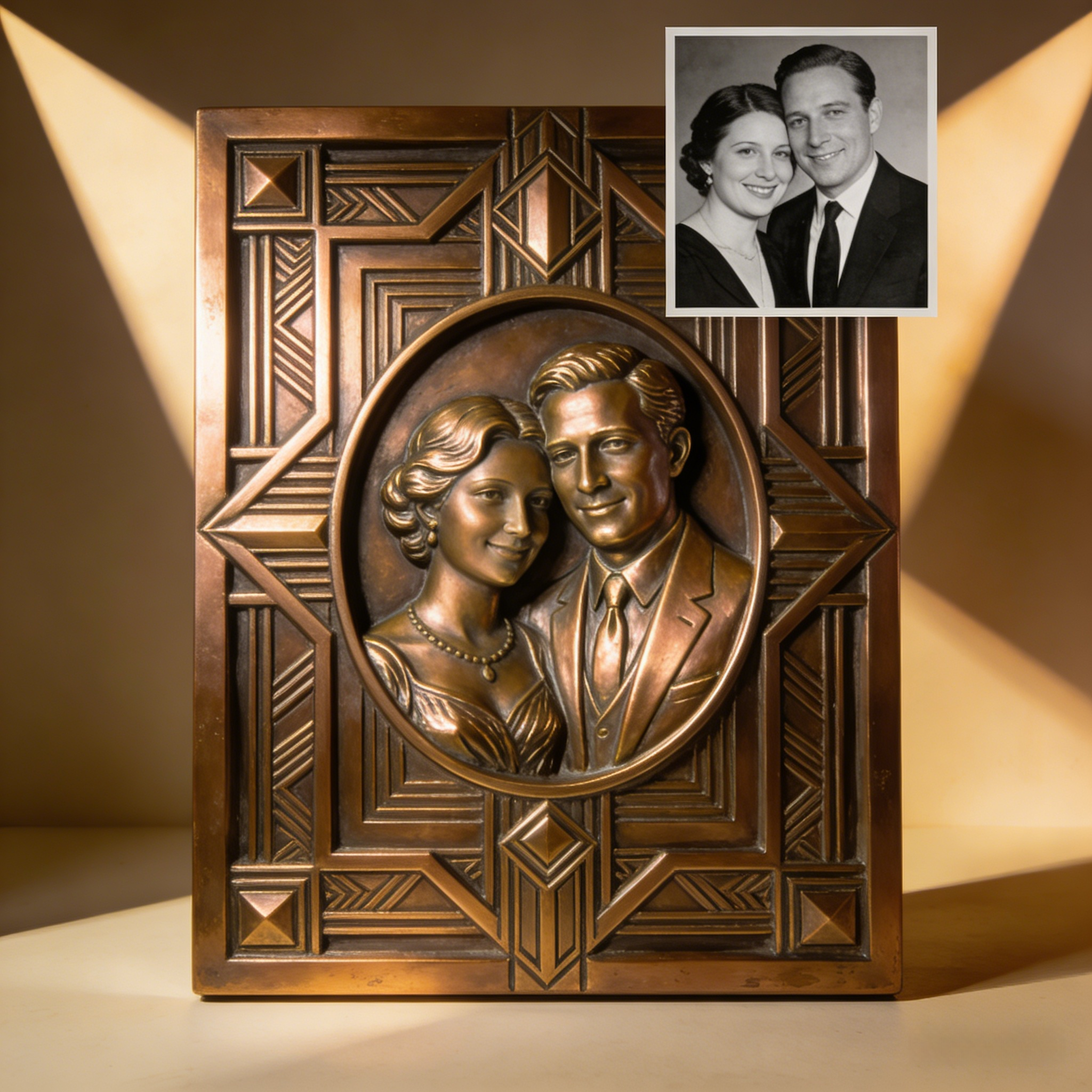 Designed with a refined bronze style portrait effect, the photo and names are created using high precision modeling techniques, ensuring clear facial features, smooth depth, and a sophisticated sculpted look. Simply upload a high resolution photo, and your image will be thoughtfully transformed into a personalized design that feels warm, romantic, and timeless.
