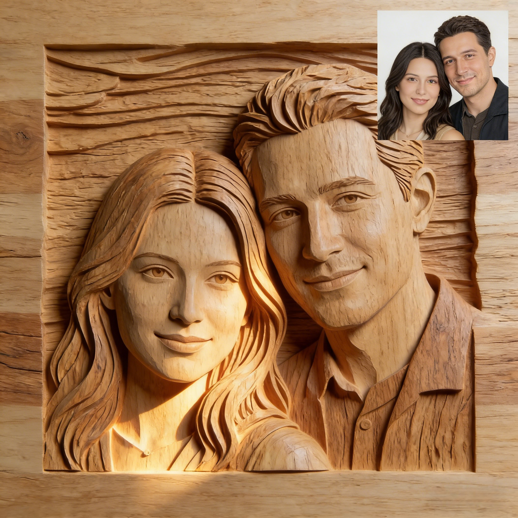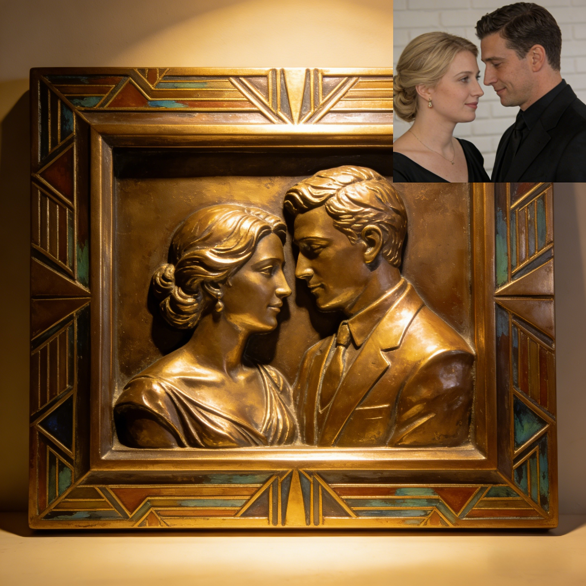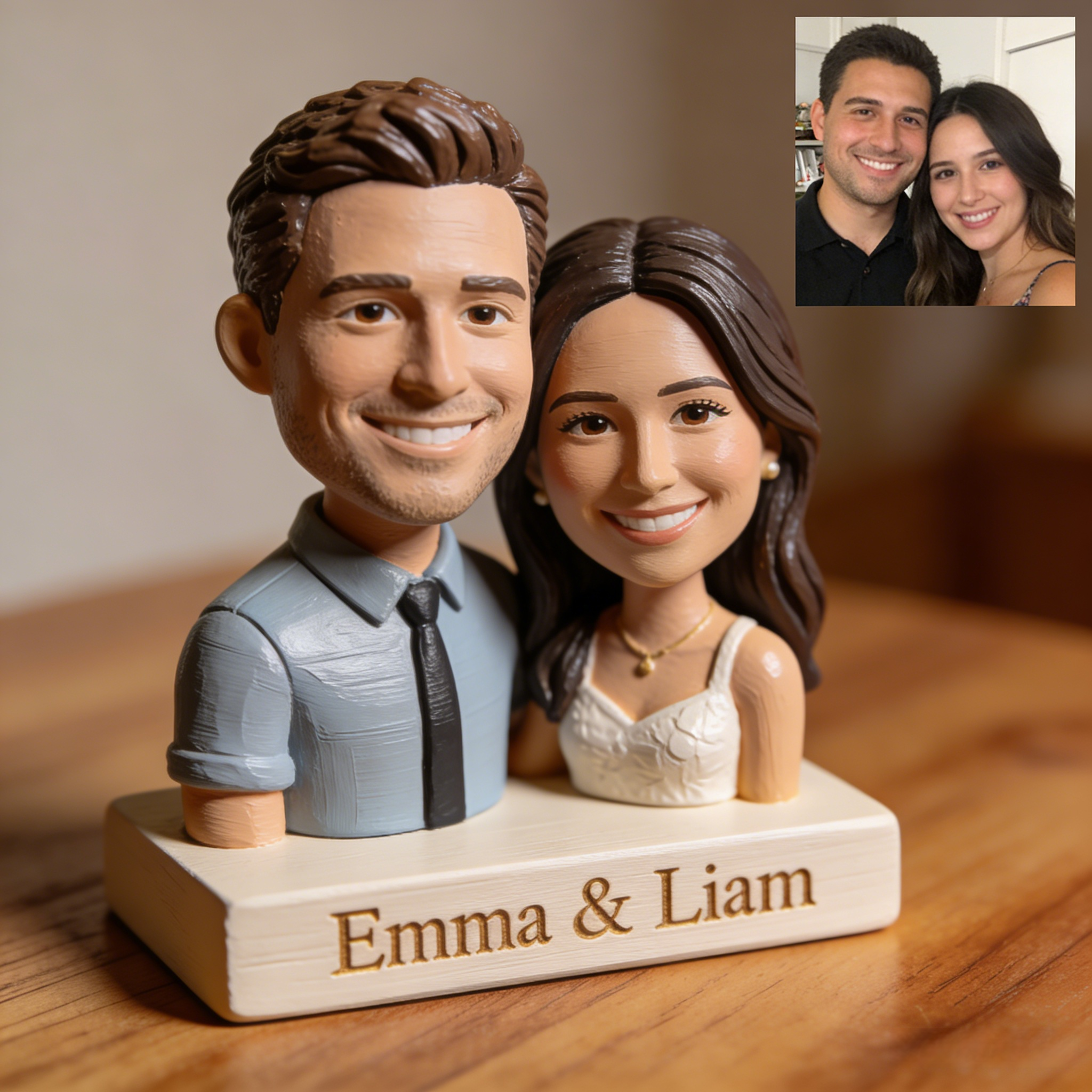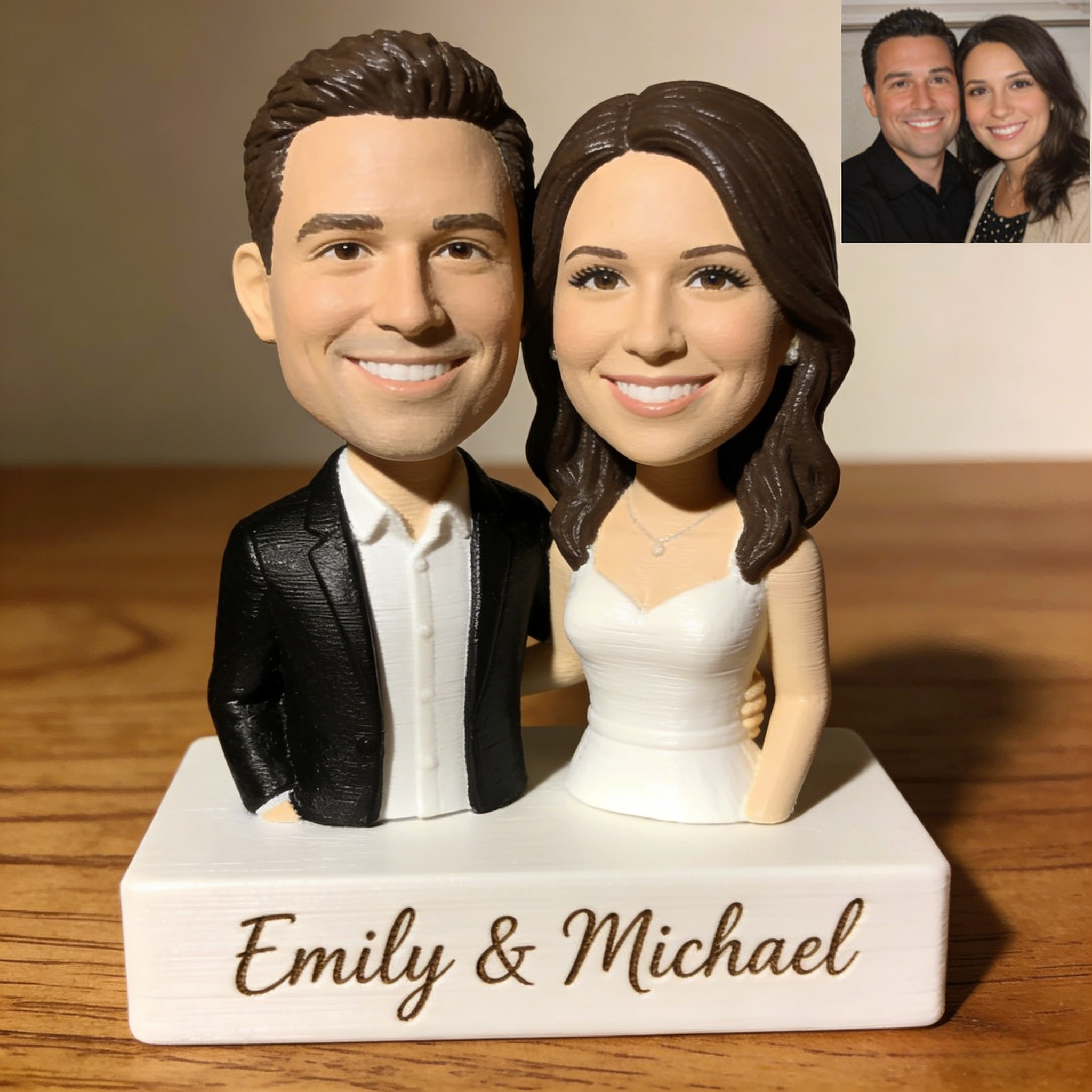 Designed with a refined bronze style portrait effect, the photo and names are created using high precision modeling techniques, ensuring clear facial features, smooth depth, and a sophisticated sculpted look. Simply upload a high resolution photo, and your image will be thoughtfully transformed into a personalized design that feels warm, romantic, and timeless.