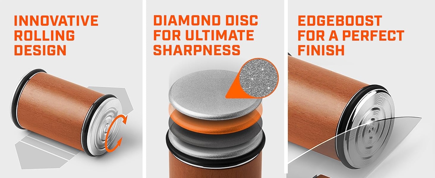 The Original Rolling Knife Sharpener™ - Knife Sharpening Made Easy - Knife Sharpener Tool for Kitchen, Outdoor & Utility Knives - Kit Offers 15 & 20° Angles - Kitchen Gadgets & Gifts for Him