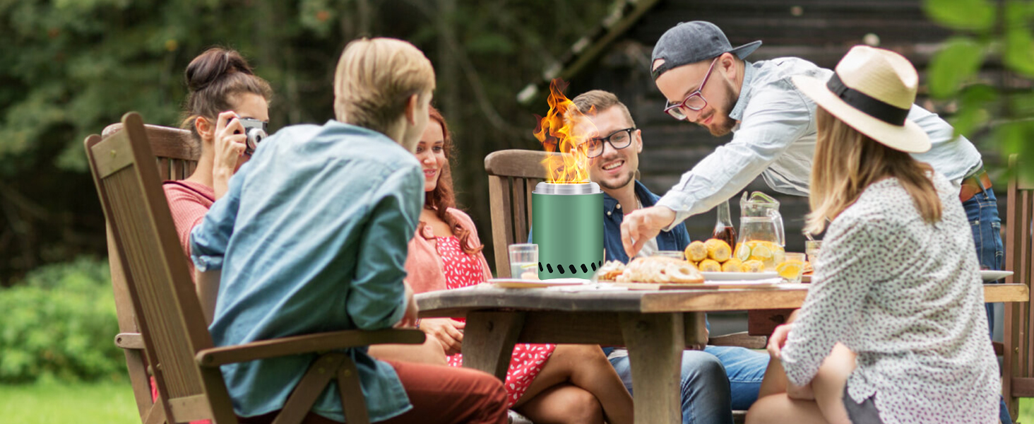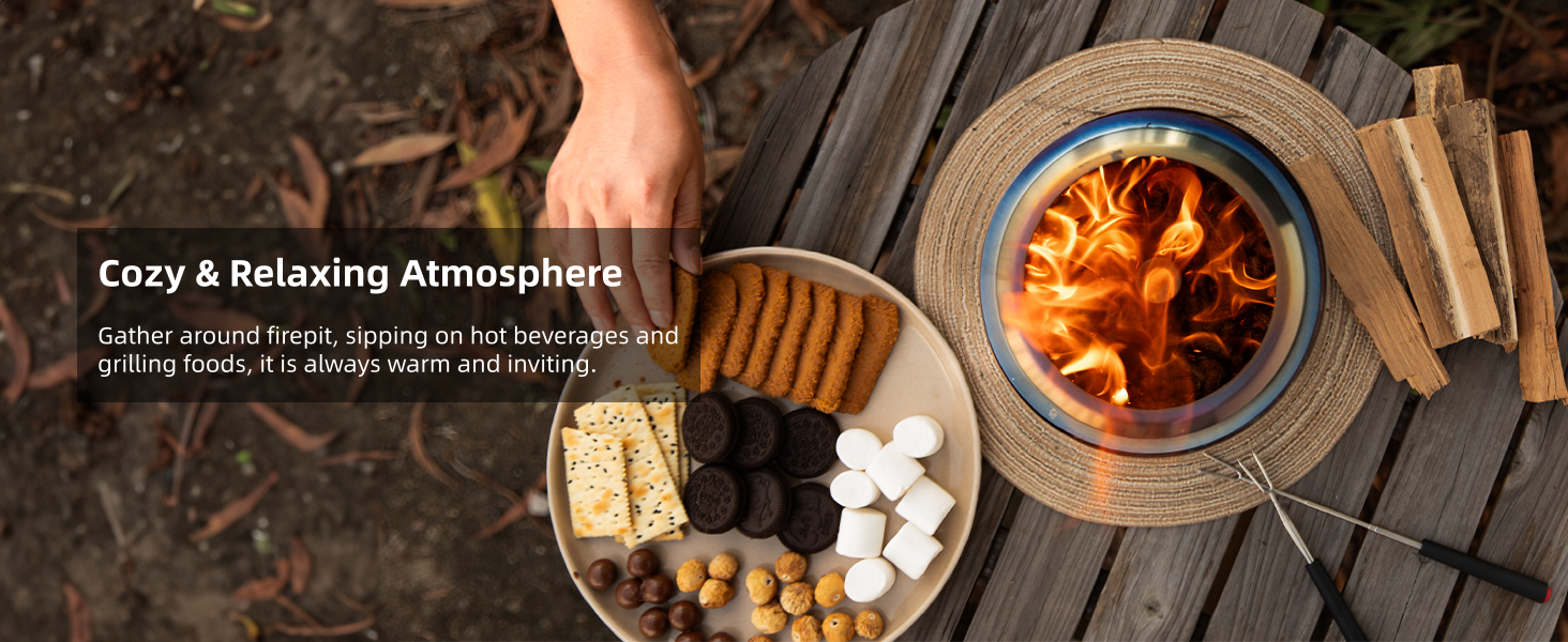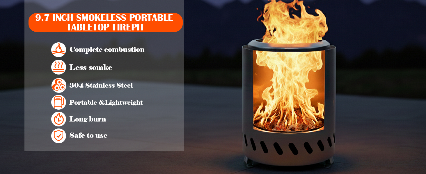 VERAFINDUSU Tabletop Fire Pit 9.7 x 7.1 in, Low Smoke Camping Stove for Outdoor & Patio, Fueled by Pellets or Wood, Safe Burning Table Top Firepit, with Travel Bag & 2 Mini Sticks & Fireproof Mat, Silver
